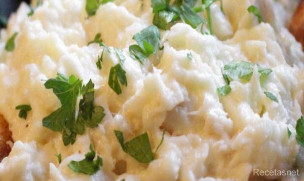 A continuación le damos un hervor a la crema de leche con una pizca de pimienta y la ponemos junto con el Bacalao, añadiremos la patata ya hervida (si queremos que nos cunda un poco mas) y un chorrito del aceite que nos quedo en la sartén.