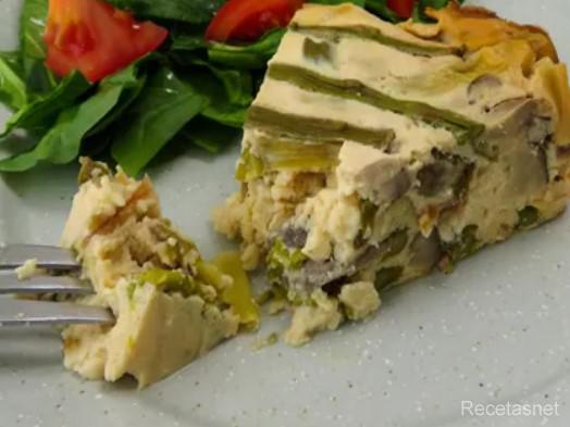 Se engrasa un molde alargado y se coloca una capa del puré de pechuga y otra de espárragos (las puntas) así sucesivamente.